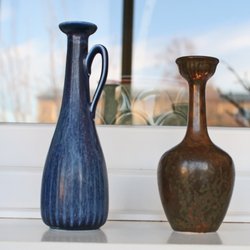 Gunnar föddes 1904 i Paris, växte upp i en dansk-finsk konstnärsfamilj och hade som ambition att demokratisera stengods och göra det till en ny industrikonst för folket. Tack vare sitt storsäljande serviceporslin, stengods, djurskulpturer, jultallrikar och offentliga verk blev han väldigt känd och idag finns flera av hans verk att köpa i olika prisklasser. Han arbetade tidigt som keramiker och under sina år som konstnärlig ledare på Rörstrand både designade och arrangerade han runt 20 stycken av fabrikens utställningar. Med Gunnars produkter får du därför alltid ett konstverk i kombination med funktion, vilket gör varje produkt till ett dekorativt blickfång som sticker ut i inredningen. Njut av hans många vaser, kronskålar eller annan keramik genom att handla dem begagnade via annonserna här på Tradera.