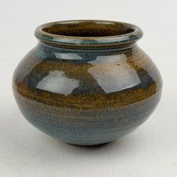 Den här vasen är ett glaserat stengodsföremål designat av den välkända svenska keramikern Hertha Bengtson för Rörstrand.