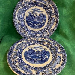 SS Svenska Slott Rörstrand 6 djupa tallrikar Tidigt 1900-tal Blå Vit Nationalromantik.