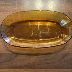 Avlångt fat från Rörstrand Lidköping. Fatet är vitt med guldfärgade detaljer längs kanten och på handtagen. Helt men Lite skavd på guldkanter ex se bild