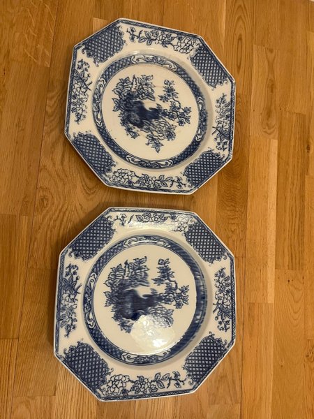 två stora serveringsfat från Rörstrand hoangho. Serie från Slutet 1800- tidigt 1900 tal