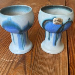 Vacker blå färg & guldkanter uppe & nere & blommönster guldfärgat på vasen, diameter på mitten ca 12-13 cm , höjd 11 cm . OBS ! Det vita på mitten av bilderna är reflexer från kamerablixten, i verkligheten ser den bra ut !!
