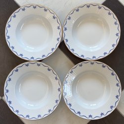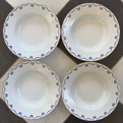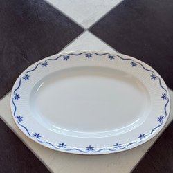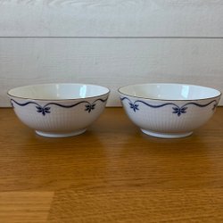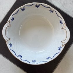 Såssnipa från Rörstrand i modellen Mårbacka. Designad av Pia Rönndahl. Vit med blått mönster och guldkant. Tål maskindisk.