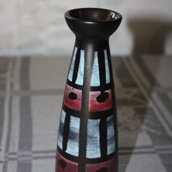 Bakgrund: En av formgivarna på Upsala-Ekeby som stod leran, materialet, närmast var Ingrid Atterberg (1920-2008). Hon experimenterade från början, likt den skolade keramikern hon var, med leror, glasyrer och tekniker. Till exempel återupplivade hon svart lera, en blandning av röd lera och manganoxid, och gjorde den till ett slagkraftigt inslag i många konstserier, inte bara sina egna; Hon producerade också en serie, Sintergods, som lyckades skapa stengodseffekter av den uppländska leran; hon fann också ett sätt att använda effekterna av chamottelera utan att behöva vrida den.