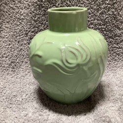 Vit vas med grön laserade öron