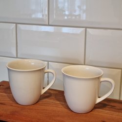 Obs! Se bilder gått en mindre flis på ena muggens botten.