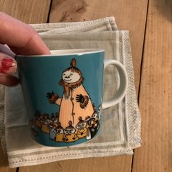 Jag har många muminmuggar ute till salu, samfraktar gärna.