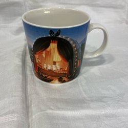 Muminmugg med motiv av Muminfamiljen som campar. Muggen är designad av Tove Slotte och tillverkad av Arabia. Den tål diskmaskin, mikrovågsugn och ugn.