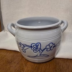 En ugnseldfast form från ARABIA, märkt S.R.I. och "19" undertill. Formen är dekorerad med ett blått blommönster. Den har två handtag på sidorna. Observera lite små sprickor i porslinet