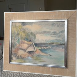 Tavla. Mått ca: 86x61cm. Skador på ramen.