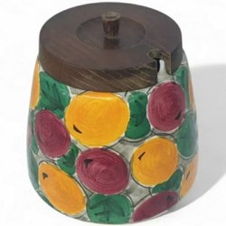 Glas med tryck har en tenn kant och hängs upp med en kedja.