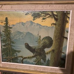 broderade tavla med motiv av fåglar och växter. Tavlorna är inramade och har glas.