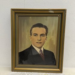 Ett porträtt föreställande en man i kostym. På baksidan finns en tejp med texten: Föreställer Birger Törnblom. Ritad av en av hans seminariekamrater i Strängnäs omkring 1920.
