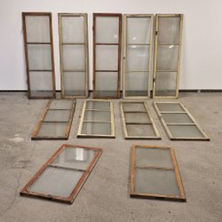 5 st. Äldre fönsterkarmar & fönsterbågar i trä - Renoveringsobjekt
