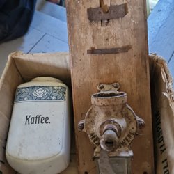En klassisk kaffekvarn med trälåda.