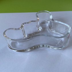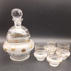 En karaff med en detaljerad hundfigur som kork. Karaffen har ett etsat mönster med en krona och Gustav den lll:es monogram på karaffens framsida .Storlek 14,5x7,5 cm .