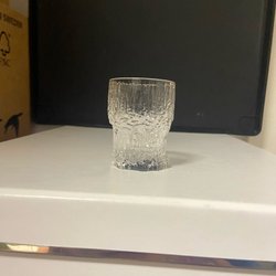 Ett vinglas med en lång stjälk och en bredare kupa. Glaset är genomskinligt.