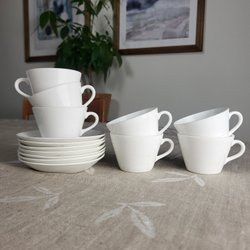 Båtporslin 4 Retro Koppar med Fat Navigare Vivere Est Arcopal