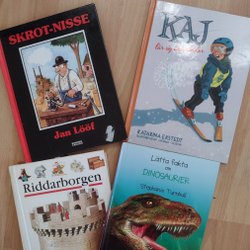 Ett paket med fyra barnböcker: