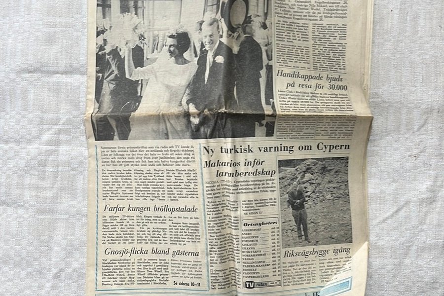 En tidning från Jonköpings-Posten. Artiklar om Désirée fager brud i Birgittas bröllop, turkisk varning om Cypern och annat.