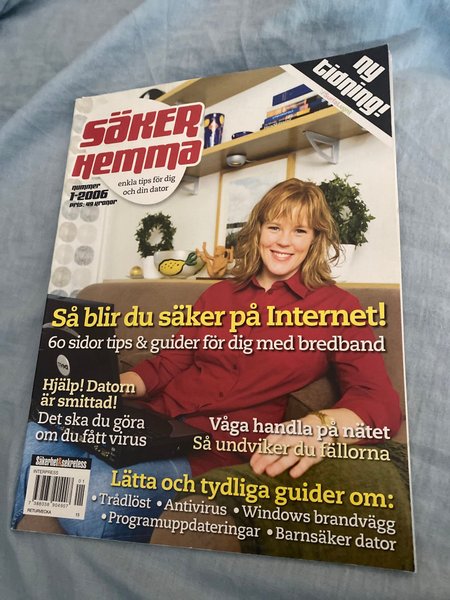Ny tidning: Säker Hemma nummer 1 från 2006. Tidningen ger enkla tips för dig och din dator, med fokus på säkerhet på internet och hur man undviker virus. Inkluderar guider om trådlöst, antivirus, Windows brandvägg, programuppdateringar och barnsäker dator. ISBN: 7388038904907