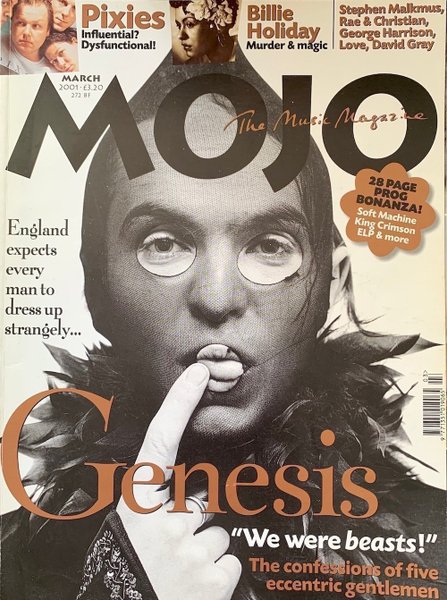 Tidningen MOJO från mars 2001 med Genesis på omslaget. Inkluderar artiklar om Pixies, Billie Holiday, Stephen Malkmus, Rae & Christian, George Harrison, Love, David Gray och en 28-sidig Prog Bonanza med Soft Machine, King Crimson, ELP och mer.