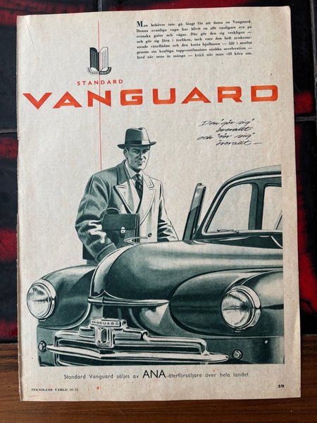 Standard Vanguard. Säljes av ANA-återförsäljare över hela landet. Teknikens Värld 10/52.