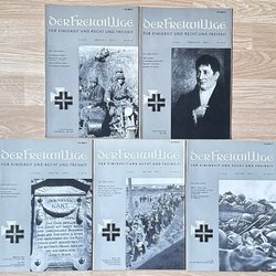 Samling av fem nummer av den tyska tidskriften 'Der Freiwillige' från 1999. Tidskriften fokuserar på historia och politik ur ett specifikt perspektiv. Varje nummer innehåller artiklar, reportage och bilder. Perfekt för samlare och de med intresse för militärhistoria och politisk analys.