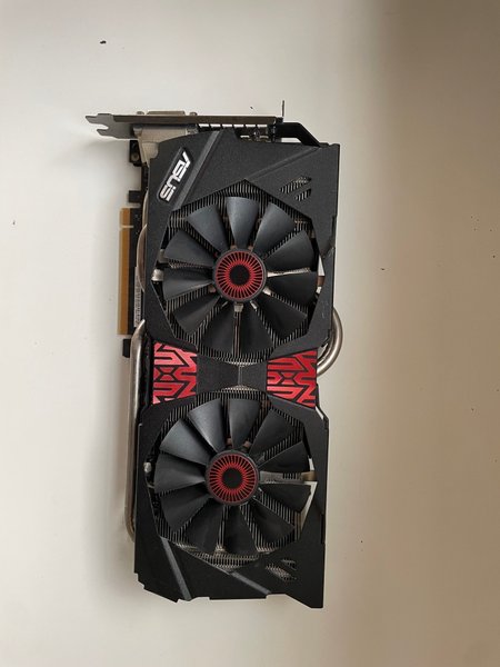 Grafikkort från ASUS 6gb msi 980 med dubbla fläktar för effektiv kylning. Kortet har en svart design med röda detaljer och är utrustat med en PCI Express-anslutning. Klarar av de flesta spel så som Fortnite och Minecraft med shaders etc. Det är ett stabilt kort och räcker långt.