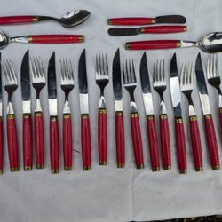 2st franska smörknivar, Melron i bakelit med mässing nitar och rostfritt stål