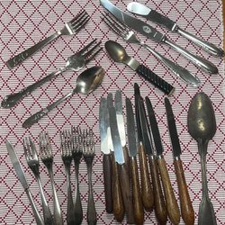 Retro bestick med teakhandtag.