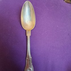 Antik sked i nysilver från början av 1900 talet, med vackert mönster på skeden. Skeden är 19 cm. Tillverkad i England