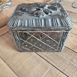 2st m,k,t gamla härliga skrin, lite patina, inte så konstigt med tanke på åldern, men hela. Den vä, L21cm, B13cm, H4cm, tillverkad av furu, namn och årtal på undersidan. Den hö, L19cm, B7cm, H8cm, tillverkad av ett massivt stycke Björk, årtal på undersidan..