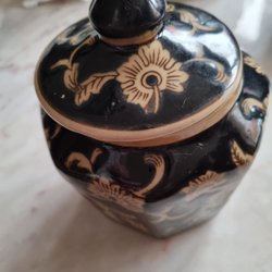 En burk med lock. Perfekt för förvaring av diverse saker. Ca 40 cm hög lite bucklig