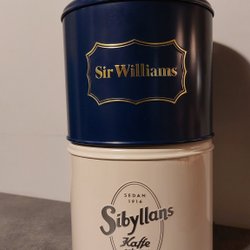 3st kaffeburkar i olika storlekar. Cirkelkaffe från en svunnen tid. Med patina!