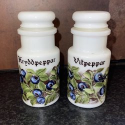 4 st oanvända kryddburkar i vitt opalglas. Inga skavanker, helt felfria, locken sluter tätt, höjd 12 cm.