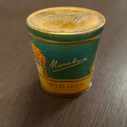 En vacker plåtburk från Milano i fint reyromönster.