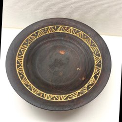 En unik träskål, perfekt för dekoration eller förvaring av småsaker. Skålen är tillverkad av trä och har en rustik och naturlig look.
