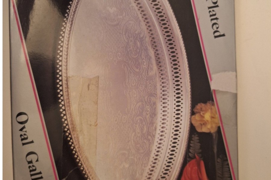 silverpläterad oval serveringsbricka (engelska: ”oval gallery tray”).