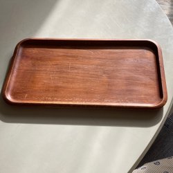 Träfat / bricka i avlång form av teak. Passar för servering eller som inredningsdetalj.