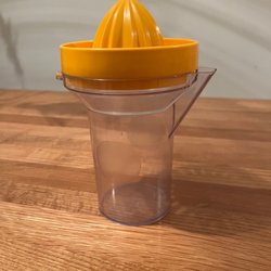 Citruspress för att enkelt pressa juice från citrusfrukter. Den har en transparent presskon och en uppsamlingsbehållare. Enheten är utrustad med en sladd för anslutning till elnätet.