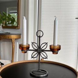 Ljusstake i glas med blomform.