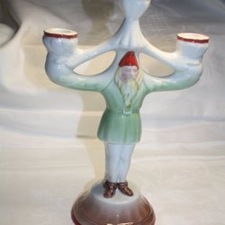 Arvegods Trearmad grönmålad träljusstake i allmogestil