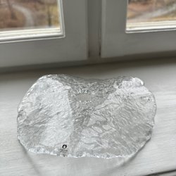 Ljusstake i glas med plats för tre ljus. Tillverkad av glas med en texturerad yta. Designen inkluderar hjärtformade detaljer.