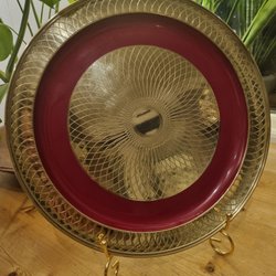 Ett litet bord, blompiedestal med mosaikdetaljer i lila glas. Perfekt som ett dekorativt inslag i hemmet. Svartlackad detaljerad metall. 8 cm hög, 9 cm i diam upptill. Hel och fin.