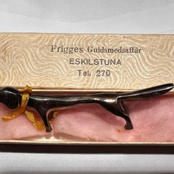 Dekorativ figur i form av en tax i metall.