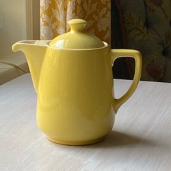 En kanna i ljusblått. Det finns en stämpel under och en ring mitt på
