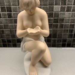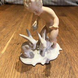 Vacker äldre figurin i porslin från Wallendorf flicka med blommor samt ljusstake för 2 stora ljus från Schaubach i porslin i mycket fint felfritt skick. Blommor som flickan sätter på ljusstaken eller plockar bort är samtliga tillverkade vasskantade, blad som blommor, inga skador anser jag, men detta ska nämnas i en annons så inga frågor angående blommor och blad uppstår efter mottagandet av köpet. Blommor och blad är tillverkade så anser jag, se och studera bilderna och få egen uppfattning. Mått flicka med blommor 14,5 x 10 x 12 cm ( H x B x L) . Den snygga tvåarmade porslinsljusstaken från Schaubach kunst har måtten 9 x 7 x 16 cm. (H x B x L) cm .