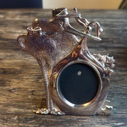 Ett sortiment av olika prydnadsföremål. Inkluderar elefanter i glas och sten, taxar i metall, hundar i porslin samt en nyckelpiga.