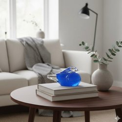 Dekorativ glasfågel i blått och klart glas.